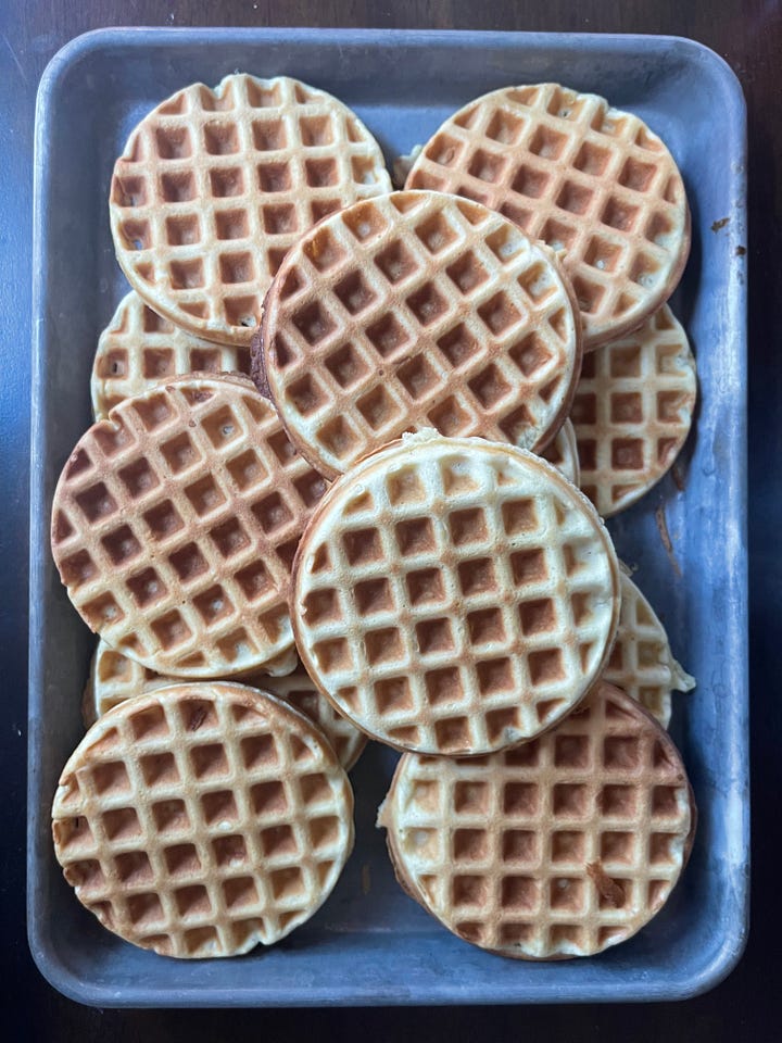 This is the absolute pinnacle of making something that’s convenient (boxed, frozen waffles) inconvenient by turning them homemade, just to make them convenient again by bagging and freezing them. Eggos were a lifesaver when I was a kid, and as I got to be a teenager I’m sure they were a big thorn in my Mom’s side with how many boxes she’d have to buy.
