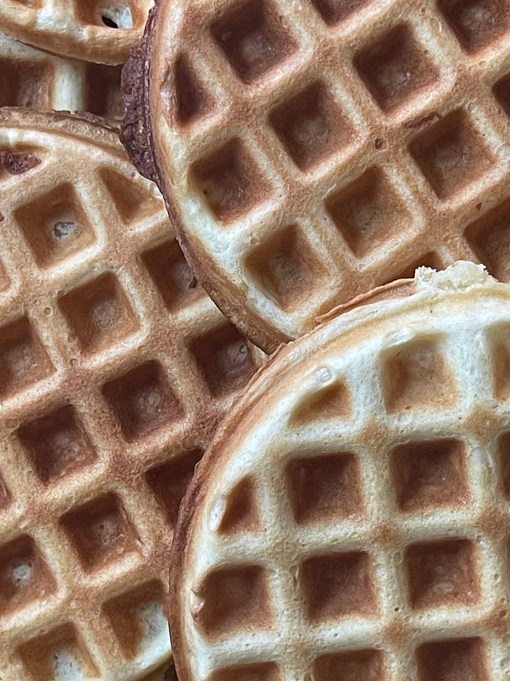 My mini waffle maker is not shaded under that umbrella, hidden in a dark closet, or concealed from view in any way. It’s right there for anyone that wanders into my kitchen to see. In fact, you can’t miss it, because in a sea of stainless steel and black appliances, the mini waffle maker greets you in all its purple plastic glory. What’s worse, to test and hone this (and some other) recipes, I recently added its big, seafoam green brother, which cooks four waffles at a time.